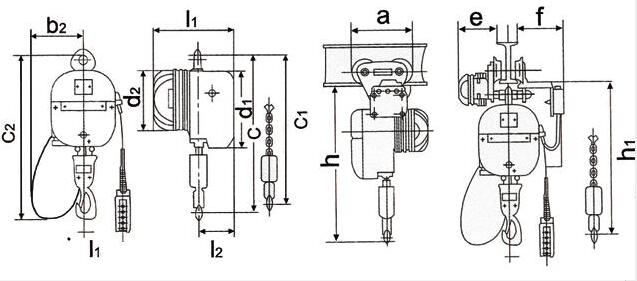 PK型環鏈電動葫蘆技術尺寸圖